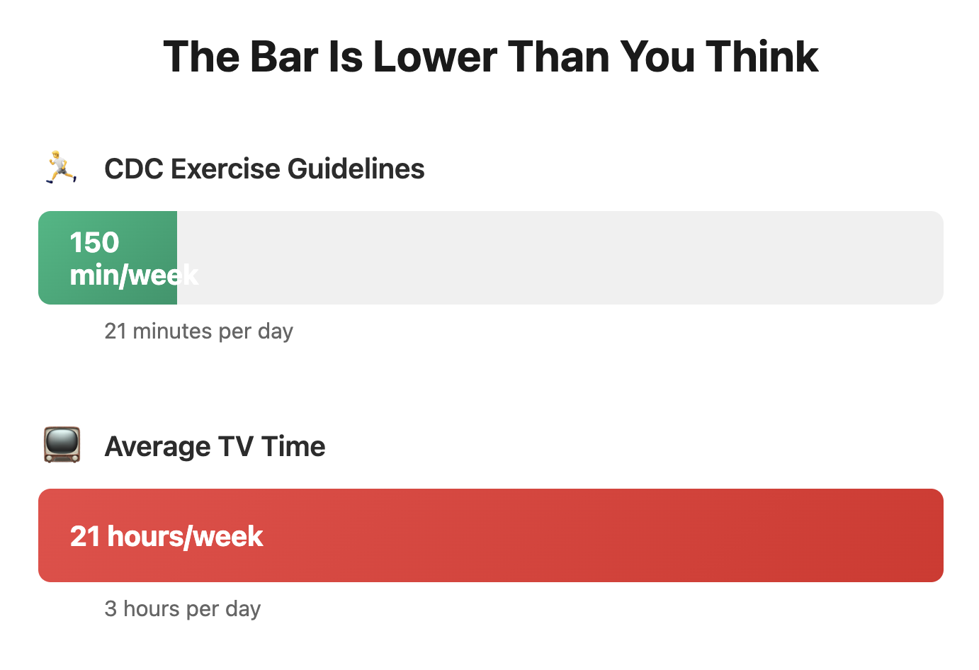 Yet, for the numerous benefits of exercise, most people fall short of these guidelines.